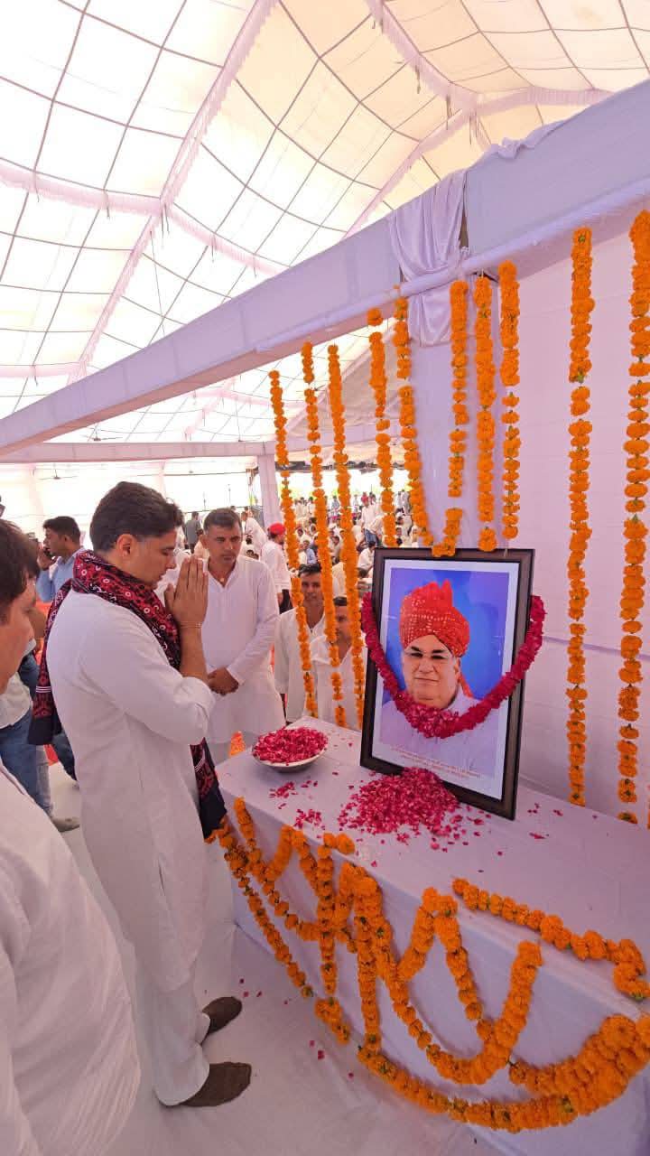 जैसलमेर- अखिल भारतीय कांग्रेस कमेटी के महासचिव एवं प्रदेश कांग्रेस के पूर्व अध्यक्ष, राजस्थान के पूर्व उप मुख्यमंत्री सचिन पायलट, मध्य प्रदेश कांग्रेस प्रभारी और बायतु विधायक हरीश चौधरी, लाडनूं विधायक मुकेश भाकर, परबतसर विधायक रामनिवास गावड़िया ने पूर्व सांसद कर्नल सोनाराम चौधरी के गांव मोहनगढ़ पहुंच कर श्रद्धांजलि अर्पित की, पूर्व उप मुख्यमंत्री पायलट के साथ मध्य प्रदेश कांग्रेस प्रभारी और बायतु विधायक हरीश चौधरी, पूर्व मंत्री हेमाराम चौधरी,पूर्व मंत्री शाले मोहम्मद, सांसद उम्मेदाराम बेनीवाल, लाडनूं विधायक मुकेश भाकर, परबतसर विधायक रामनिवास गावड़िया , दांतारामगढ़ से विधायक वीरेंद्र सिंह, जोधपुर लोकसभा से सांसद प्रत्याशी करण सिंह उचियारड़ा आदि ने कर्नल के गांव मोहनगढ़ में चित्र पर पुष्पांजलि अर्पित की परिवार को संवेदनाएं व्यक्त कर ढांढस बंधाया और कर्नल सोनाराम चौधरी के कृतित्व एवं व्यक्तित्व पर प्रकाश डालते हुए उन्हें एक संघर्षशील और स्पष्ट वक्ता बताया!